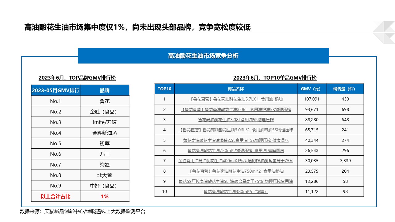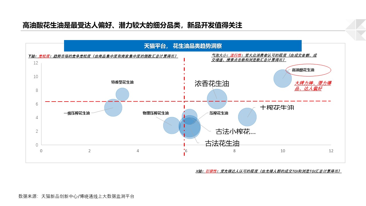 当前高油酸花生油的市场潜力巨大,与其他食用油品类相比竞争宽松度较低,值得重点关注。